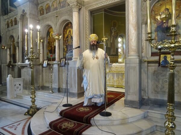Ο άγιος Ιεροκήρυξ λαμβάνοντας αφορμή από το Ευαγγελικό ανάγνωσμα της Κυριακής, που αναφερόταν στην θεραπεία του δούλου του Εκατοντάρχου, εστίασε στο πρόσωπο του Εκατοντάρχου και στην μεγάλη και βαθειά πίστη που επέδειξε στο πρόσωπο του Κυρίου μας. Αυτή την πίστη θαύμασε ο Κύριος και την προέβαλλε στους μαθητές του, ώστε να την διαδώσουν και να εύρει μιμητές. Κατέληξε δε την ομιλία του ο π. Άνθιμος με τις ευχές και τις ευλογίες του σεπτού Ποιμενάρχου μας κ. Διονυσίου και με την βεβαιότητα ότι ο πιστός Χριστιανός και το μεγαλύτερο εμπόδιο να συναντήσει στον πνευματικό του αγώνα, αυτό θα εξαφανισθεί, εφόσον έχει ως σύμμαχό του τον Θεό!