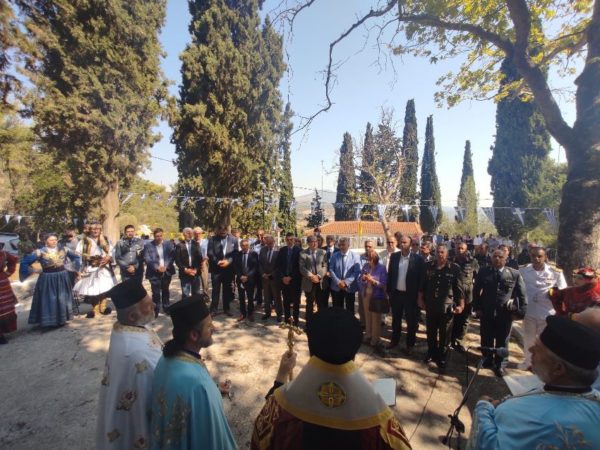Μετά το πέρας της Θείας Λειτουργίας, τελέσθηκε από τον Θεοφιλέστατο Πρωτοσύγκελλο της Ι. Μητροπόλεως Κορίνθου, Επίσκοπο Κεγχρεών κ. Αγάπιο, τους Αιδεσ. π. Δημήτριο Ζούζια, π. Δημήτριο Καρυοφίλλα, π. Δημήτριο Τσιωτάκη και τον Διάκονο π. Χρήστο Χίλια επίσημη Δοξολογία στον περίβολο του Ιερού Ναού, και στην συνέχεια και ενώπιον του ανδριάντα του Θεοδώρου Κολοκοτρώνη έλαβε χώρα Επιμνημόσυνη Δέηση και κατάθεση στεφάνων.