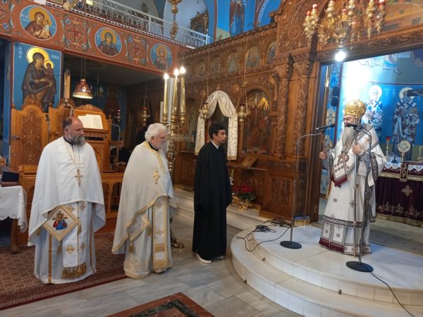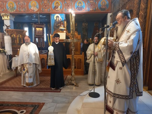 Τον Ποιμενάρχη πλαισίωσαν, οι συνοδοί του Κληρικοί και οι Εφημέριοι του Ιερού Ναού Αιδεσ. Πρωτοπρεσβύτερος π. Ιωάννης Δελημπαλτάς και Αιδεσ. Σταυροφόρος – Οικονόμος π. Δημήτριος Στεργιόπουλος.