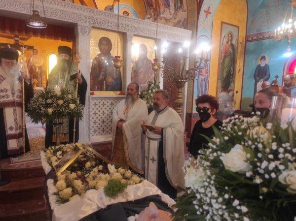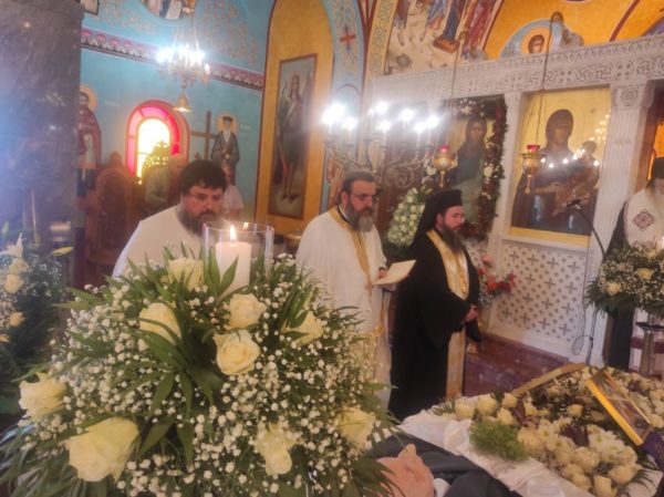 Στην Εξόδιο Ακολουθία έλαβαν μέρος ο Πανοσιολογιώτατος Αρχιμ. π. Νικηφόρος Παπαβραμόπουλος εκ της Ι. Μητροπόλεως Καλαβρύτων και Αιγιαλείας, συνοδός του Σεβασμιωτάτου αγίου πρώην Καλαβρύτων κ. Αμβροσίου, οι Αιδεσ. Πρωτοπρεσβύτεροι π. Ιωάννης Γιαννακάς ,Εφημέριος του Ι. Ναού Αγίου Ιωάννου Δερβενίου και Αρχιερατικός Επίτροπος Ευρωστίνης, ο π. Αθανάσιος Κοντογιάννης, Εφημέριος του Καθεδρικού Ι. Ναού Απ. Παύλου Κορίνθου, οι Αιδεσ. Πρεσβύτεροι π. Βλάσιος Δρούγκας, Εφημέριος του Ι. Ναού Αγ. Χαραλάμπους Καλλιθέας και π. Βασίλειος Ευσταθιάδης, Εφημέριος του Ι. Ναού Αγ. Παντελεήμονος Μαύρων Λιθαρίων ως και ο Πρωτοδιάκονος π. Χρήστος Χίλιας.