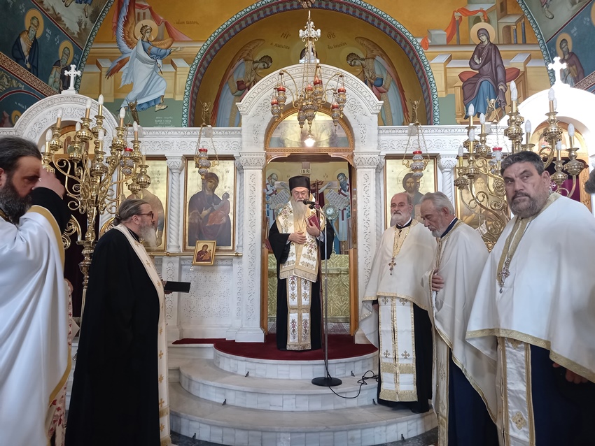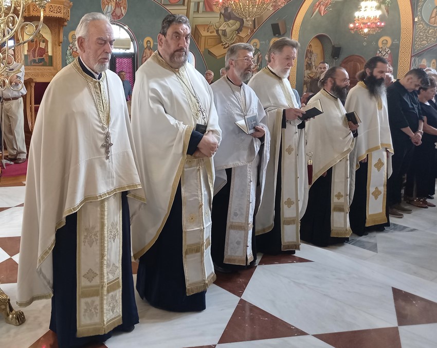 Στον επικήδειό του ο Ποιμενάρχης μας ανέλυσε το Ευλογητάριο «Οἱ τήν ὁδόν την στενήν βαδίσαντες, τεθλιμμένην πάντες οἱ ἐν βίῳ οἱ τόν σταυρόν, ὡς ζυγόν ἀράμενοι, και ἐμοί ἀκολουθήσαντες ἐν πίστει, δεῦτε ἀπολαύετε, ἅ ἡτοίμασα ὑμῖν βραβεία, καί στέφη τά οὐράνια», το οποίο αναφέρεται στους Ιερείς που επέλεξαν να ζήσουν την ζωή τους με αυτόν τον τρόπο, ακολουθώντας δηλαδή τα ίχνη και την Σταυρική πορεία του Κυρίου μας. Αυτή η Σταυρική πορεία όμως, δεν σταματά σε μια ζωή γεμάτη θλίψεις, δάκρυα και πόνο. Τέτοια ζωή δεν μας αξίζει, διότι, όπως λέει χαρακτηριστικά ο Μέγας Πατέρας και ανθρωπολόγος της Εκκλησίας ο Άγιος Ιωάννης Δαμασκηνός, αυτού του είδους η ζωή είναι χειρότερη και από τη ζωή των ζώων που δεν έχουν την νοημοσύνη. Μόνον ο άνθρωπος με την νόηση, που του έδωσε ο Θεός, αντιλαμβάνεται τα γεγονότα και αισθάνεται πως πλησιάζει ο θάνατος και μαζί του ο φόβος για αυτό το «μυστήριο». Πριν ή και μετά τον Χριστό υπήρξαν «φιλόσοφοι» που είπαν ότι αυτή είναι η ζωή μας, δεν υπάρχει τίποτα μετά οπότε ας φάμε, ας πιούμε, ας γλεντήσουμε τη ζωή μας αφού έτσι κι αλλιώς θα πεθάνουμε. Όμως ο Σταυρικός θάνατος του Χριστού, που οδήγησε στην Ανάσταση, μας έδωσε την ελπίδα της Αναστάσεως. Με το τροπάριο, μας διδάσκει ότι όσοι ακολούθησαν τα ίχνη Του, τους καλεί να λάβουν τα βραβεία και τα στεφάνια τα ουράνια. «Ελάτε, γιατί δεν σας αξίζει να μείνετεστον Άδη, αλλά πρέπει να αναστηθείτε»!