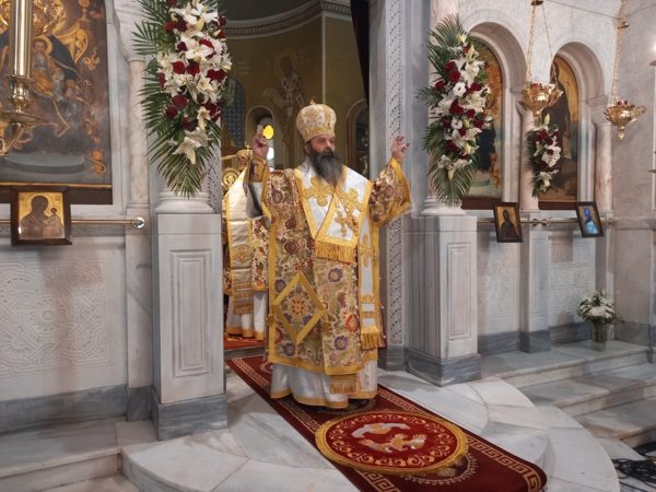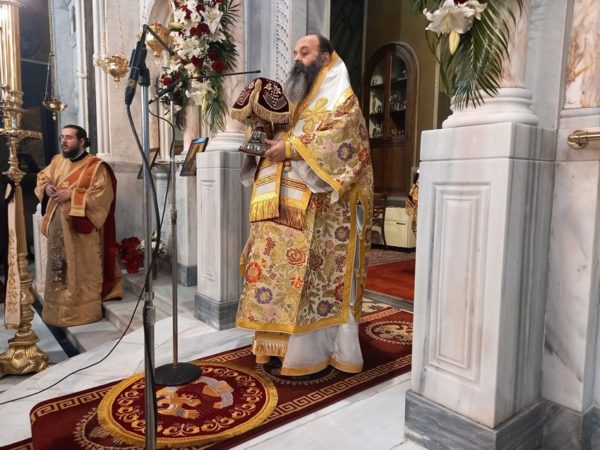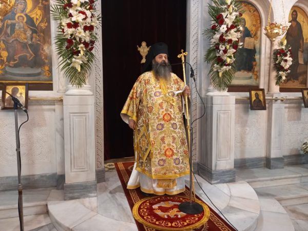 Τον ιερό άμβωνα διακόνησε, κατόπιν σεπτής εντολής του Σεβασμιωτάτου, ο Θεοφιλέστατος Επίσκοπος Κεγχρεών και Πρωτοσύγκελλος της Ιεράς Μητροπόλεως Κορίνθου κ. Αγάπιος, ο οποίος με αφορμή το Ευαγγελικό ανάγνωσμα της ημέρας αλλά και το Αποστολικό, που ορίζει η Εκκλησία μας για την Κυριακή αυτή και το οποίο αντικαταστάθηκε, ένεκα της Ιεράς Πανηγύρεως, απ᾿ αυτό του Ιερομάρτυρος, ομίλησε για τα χαρίσματα (τάλαντα), που ο Θεός πλούσια χαρίζει σε κάθε πλάσμα Του.