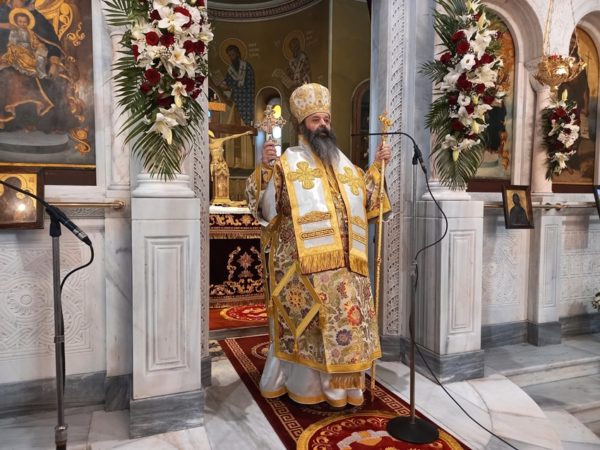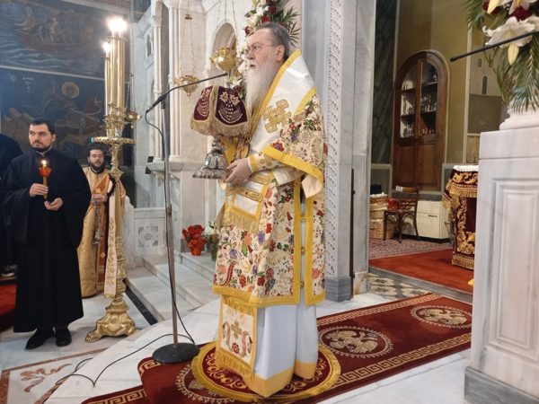 Τον Θείο λόγο κήρυξε ο Πανοσ. Αρχιμανδρίτης π. Άνθιμος Παπαλεξόπουλος, Ιεροκήρυξ της Ιεράς Μητροπόλεως Κορίνθου και Ηγούμενος της Ιεράς Μονής Παναγίας «Πάντων Χαρά» Καλετζίου, ο οποίος, αφού ευχαρίστησε τον σεπτό Ποιμενάρχη για την ευλογία της διακονίας του λόγου, αναφέρθηκε στην Πίστη και στο Μαρτύριο ως τους δύο πυλώνες που χαρακτηρίζουν τον άνθρωπο του Θεού, δηλαδή, αυτόν που στην ζωή του αγωνίζεται να εφαρμόσει τις εντολές του Θεού και να αποκτήσει αγιότητα βίου. Ο Ιεροκήρυξ επεσήμανε ότι η Πίστη δεν είναι προσωπική υπόθεση του καθενός αλλά οφείλουμε να έχουμε ενότητα Πίστεως ευθυγραμμίζοντας την ζωή μας με την Πίστη των Αγίων προπατόρων μας. Το μαρτύριο δε είναι η απόδειξη της Πίστεως. Όταν κάποιος πιστεύει δεν έχει να φοβηθεί τίποτε, ούτε και να δειλιάσει, αντίθετα προχωρεί προς το μαρτύριο με παρρησία και εν δόξη όπως ακριβώς έκανε και ο τιμώμενος Άγιος Βλάσιος ο Θαυματουργός, ο Οποίος με την θερμή του Πίστη στον αληθινό Θεό οδηγήθηκε στο Μαρτύριο. Ολοκλήρωσε τον λόγο του προς τους Πιστούς με την προτροπή «γίνου πιστὸς ἄχρι θανάτου, καὶ δώσω σοι τὸν στέφανον τῆς ζωῆς» (Αποκ. β,10΄).