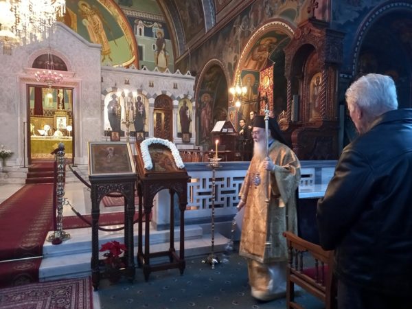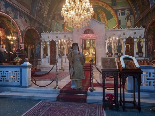 Εξ αυτού του γεγονότος ο Σεβασμιώτατος Μητροπολίτης Κορίνθου κ. Διονύσιος τέλεσε πλαισιούμενος από τους Ιερείς του Ιερού Ναού και τους Διακόνους του Αρχιερατική Θεία Λειτουργία την Κυριακή, 22 Ιανουαρίου 2023.