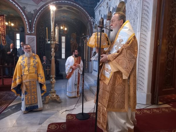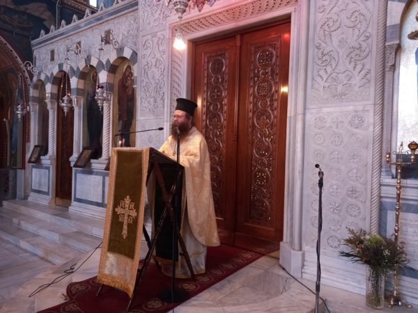 Κατ’ εντολή του Σεβασμιωτάτου τον Θείο λόγο κήρυξε ο Αρχιερατικός Επίτροπος Κορίνθου-Λουτρακίου και Προϊστάμενος του Ιερού Ναού Αιδεσ. Πρωτ/ρος π. Παναγιώτης Μαυραγάνης, ο οποίος αναφέρθηκε στον τιμώμενο Άγιο Τιμόθεο, ο οποίος υπήρξε ένας εκ των εβδομήκοντα μαθητών του Κυρίου ημών Ιησού Χριστού, μαθητής του Αποστόλου Παύλου και παραλήπτης δύο Επιστολών Του, οι οποίες εμπεριέχουν συμβουλές και οδηγίες σχετικά με τη ζωή της Εκκλησίας, αφού ο Άγιος ήταν Επίσκοπος Εφέσου.