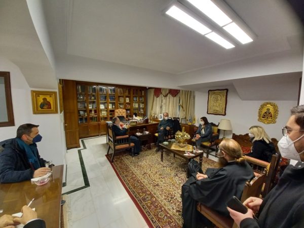 Επίσκεψη εργασίας πραγματοποίησαν χθες Δευτέρα, 28 Φεβρουαρίου 2022, ο Περιφερειάρχης Πελοποννήσου κ. Παναγιώτης Νίκας συνοδευόμενος από την Αντιπεριφερειάρχη Π.Ε. Κορινθίας κ. Αθηνά Κόρκα, τη Γενική Διευθύντρια Περιφερείας κ. Αγγελική Πουλοπούλου, τον Προϊστάμενο Τεχνικών Έργων Π.Ε. Κορινθίας κ. Νικόλαο Λούτα και τον Σύμβουλο για θέματα έργων Κορινθίας κ. Χάρη Μπούρα, στα γραφεία της Ι. Μητροπόλεως Κορίνθου, όπου είχαν κατ’ ιδίαν συνάντηση και συνεργασία με τον Σεβ. Μητροπολίτη Κορίνθου κ. Διονύσιο, προκειμένου να υπογράψουν Συμβάσεις για την ενεργειακή αναβάθμιση των κτηρίων της Ι. Μητροπόλεως Κορίνθου, στα οποία θα στεγαστούν το Εκκλησιαστικό Μουσείο και η Βιβλιοθήκη της Ι. Μητροπόλεως Κόρινθου, καθώς επίσης έργα για το «Γεύμα Αγάπης» του Καθεδρικού Ι. Ναού Απ. Παύλου Κορίνθου και αποκατάστασης του Ι. Ναού Αγίου Γεωργίου Χιλιομοδίου.