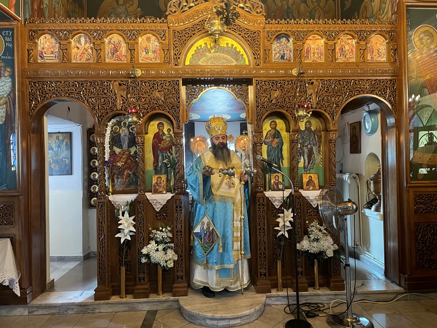 Μετά του Θεοφιλεστάτου λειτούργησαν ο Εφημέριος του Ι. Ναού Πανοσ. Αρχιμ. π. Μακάριος Μπογιατζόγλου και οι Διάκονοι π. Χρήστος Χίλιας και π. Άγγελος Σαλάτας.