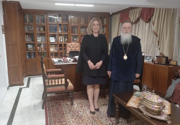 Τον Σεβασμιώτατο επισκέφθηκε η πρώην Βουλευτής, Σύμβουλος του Πρωθυπουργού και υποψήφια Βουλευτής της Ν.Δ. στις επερχόμενες Βουλευτικές Εκλογές της 21ης Μαΐου κ. Μαρία-Ελένη Σούκουλη-Βιλιάλη, με την οποία συζήτησαν εγκάρδια θέματα που άπτονται της τρέχουσας επικαιρότητας, τοπικού και πανεθνικού επιπέδου, ενώ δεν παρέλειψαν να αναφερθούν και σε θέματα θρησκευτικού, κοινωνικού και φιλανθρωπικού ενδιαφέροντος, για το οποίο η κ. Σούκουλη έδειχνε πάντοτε ιδιαίτερη σπουδή παρακολουθώντας εκ του σύνεγγυς τις δραστηριότητες, τις εκδηλώσεις και το πολυποίκιλο έργο της Ι. Μητροπόλεως μας.