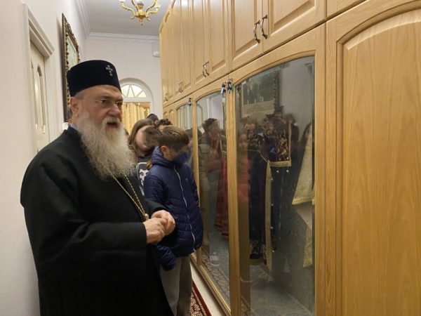 Στην συνέχεια ο Σεβασμιώτατος Μητροπολίτης Κορίνθου κ. Διονύσιος ξενάγησε τους μαθητές στους χώρους του Επισκοπείου και των Γραφείων, ώστε να κατανοήσουν τον τρόπο που διοικείται και συντονίζεται το ευρύτερο έργο και οι δράσεις της Ιεράς Μητροπόλεως Κορίνθου.