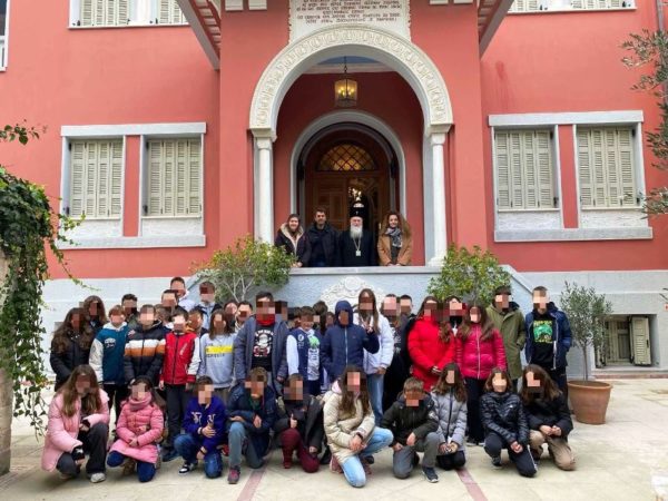 Μαθητές και μαθήτριες της Ε’ και της ΣΤ’ Τάξης του 5ου Δημοτικού Σχολείου Κορίνθου συνοδευόμενοι από την Διευθύντρια του Σχολείου κ. Αθανασία Τσιλιγιάννη και τους Εκπαιδευτικούς κ. Μαρία Τσάμη και κ. Βασίλειο Γαλατσίδα, επισκέφθηκαν το πρωί της Δευτέρας 29ης Ιανουαρίου 2024 την Κροκίδειο Αίθουσα, το Επισκοπείο και τα Γραφεία της Ιεράς Μητροπόλεως Κορίνθου προκειμένου να έχουν μια γνωριμία με τον Σεβασμιώτατο Μητροπολίτη κ. Διονύσιο, τις Υπηρεσίες της Ιεράς Μητροπόλεώς Κορίνθου και να πληροφορηθούν για τις δραστηριότητες της Τοπικής Εκκλησίας.