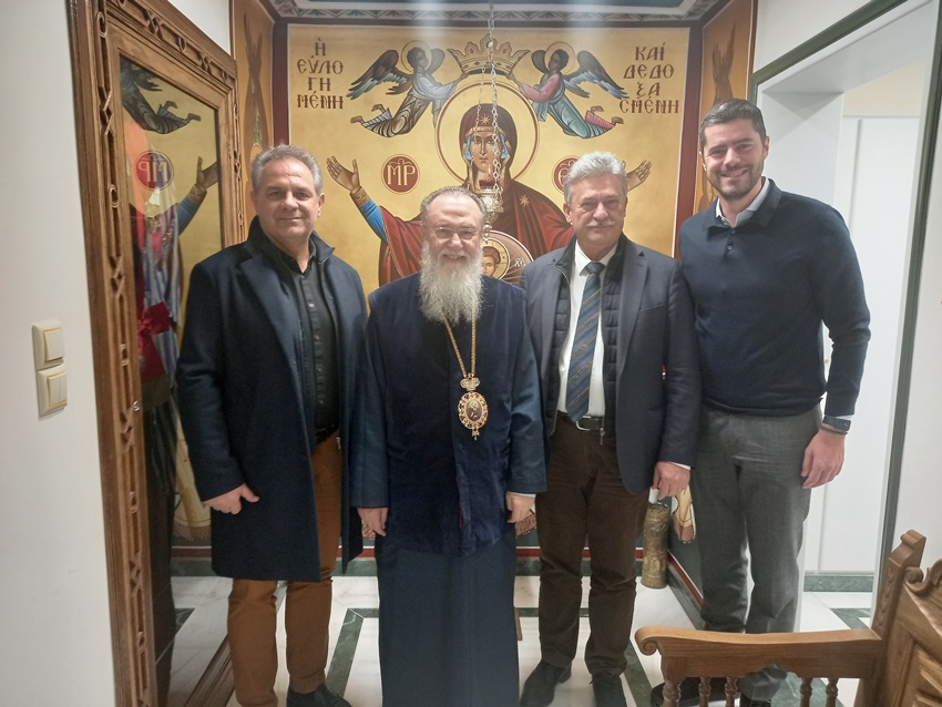 Εορταστική επίσκεψη πραγματοποίησε την Δευτέρα, 19 Δεκεμβρίου 2022, ο Δήμαρχος Κορινθίων κ. Βασίλειος Νανόπουλος, συνοδευόμενος από τον κ. Δημήτριο Πιστεύο, Πολιτικό Μηχανικό και υποψήφιο Δήμαρχο Σικυωνίων και τον κ. Δημήτριο Γιαννόπουλο, Αντιπρόεδρο της Εταιρίας TIKUN, στον Σεβασμιώτατο Μητροπολίτη Κορίνθου κ. Διονύσιο.
