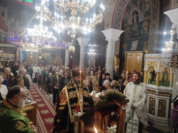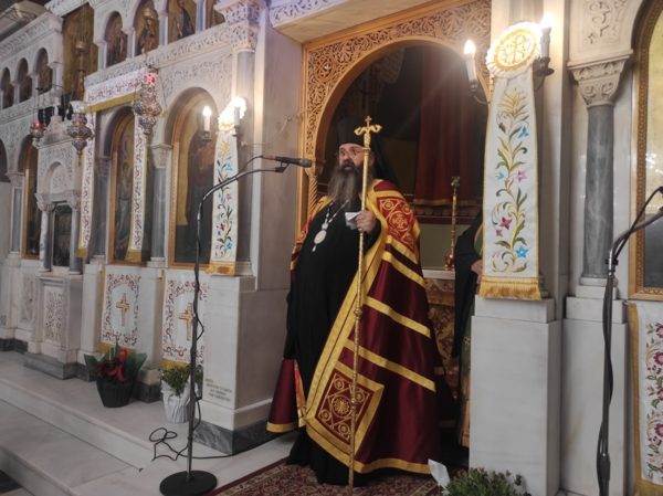 Ο Θεοφιλέστατος, ο οποίος πλαισιώθηκε από τους Πανοσ/τον Αρχιμ. π. Ρωμανό Φωκάκη, τον Αιδεσ/τον π. Παναγιώτη Αντωνόπουλο, Εφημερίους του ως άνω Ι. Ναού, και τον Διάκονο π. Χρήστο Χίλια, ανέφερε και παραδείγματα Χριστανών μητέρων που εμπνεύσθηκαν από την μητρική στοργή της Θεοτόκου και ανέδειξαν μεγάλους άνδρες στον χώρο της Πίστεως