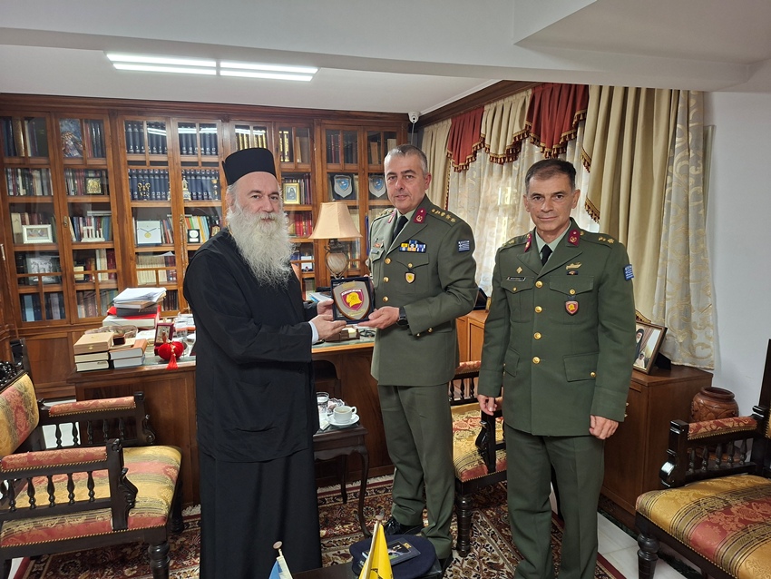 Στην συνέχεια, ο Σεβασμιώτατος συναντήθηκε με τον Ανώτατο Διοικητή Φρουράς Κορίνθου και Διοικητή της Σχολής Μηχανικού Λουτρακίου, Συνταγματάρχη Μηχανικού κ. Νικόλαο Κορίτση και τον Ταγματάρχη Μηχανικού κ. Αχιλλέα Μπούτσικα. Ο Σεβασμιώτατος τους ευχαρίστησε για την, επί σειρά ετών, αγαστή συνεργασία της Ι. Μητροπόλεως με το Στράτευμα αλλά και με την Σχολή Μηχανικού ειδικότερα, την οποία ευελπιστεί να συνεχιστεί απρόσκοπτα.