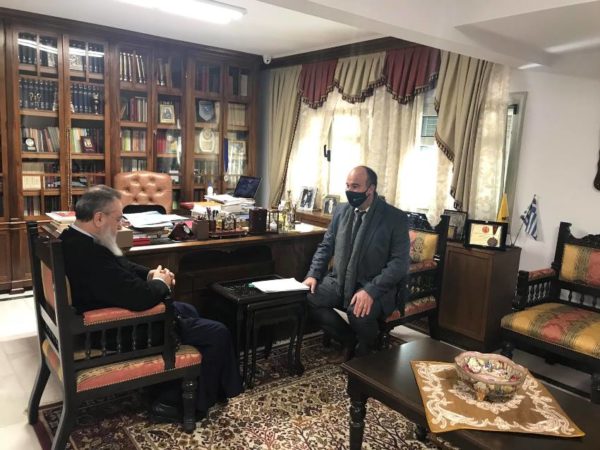 Επίσκεψη στα Γραφεία της Ιεράς Μητροπόλεως Κορίνθου, με σκοπό την ανταλλαγή εορταστικών ευχών για την είσοδο στο Νέο (Πολιτικό) Έτος 2021, πραγματοποίησε σήμερα Πέμπτη, 31 Δεκεμβρίου 2020 ο Αντιπεριφερειάρχης Κορινθίας κ. Αναστάσιος Γκιολής, στον Σεβασμιώτατο Μητροπολίτη κ. Διονύσιο.
