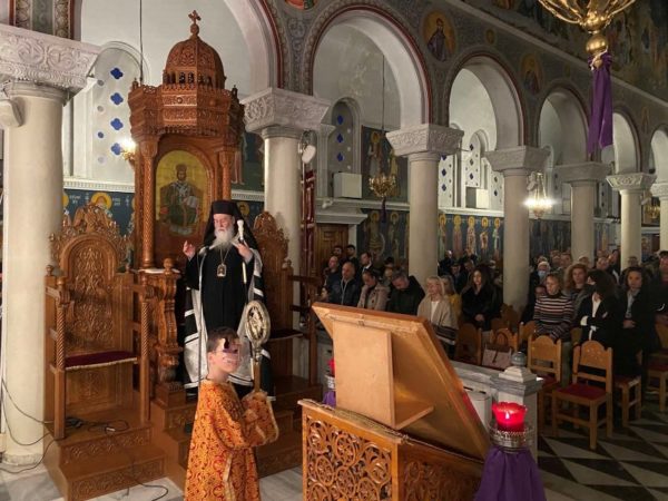Ο Σεβασμιώτατος, απευθυνόμενος προς τους συμμετέχοντες στην Ιερά Ακολουθία πιστούς, κατέδειξε ότι σκοπός της Εκκλησίας είναι η δια της μετανοίας σωτηρία του ανθρώπου. Δεν μπορεί ο άνθρωπος να κερδίσει την σωτηρία εξ έργων νόμου, αφού η σωτηρία χαρίζεται από τον Θεό μέσω των δακρύων που χύνει ο άνθρωπος μετανοώντας και ζητώντας το έλεος Του. Ο Χριστός μας καλεί όλους σε μετάνοια προβάλλοντας σήμερα την μετάνοια της πόρνης γυναικός, η οποία άλειψε με πολύτιμο μύρο και με τα δάκρυα της μετανοίας της τα πόδια του Κυρίου.