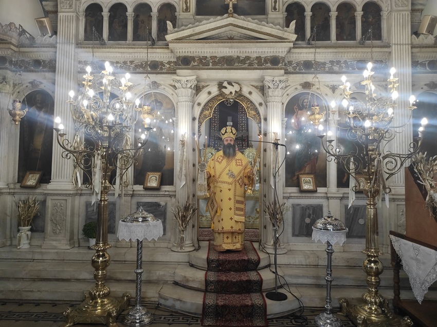 Την Δευτέρα, 17 Ιουλίου 2023, ο Βοηθός Επίσκοπος και Πρωτοσύγκελλος της Ι. Μητροπόλεώς  χοροστάτησε στον Όρθρο και προέστη της Θ. Λειτουργίας στον πανηγυρίζοντα Ι. Ναό Αγ. Μαρίνης Βέλου, πλαισιούμενος από Κληρικούς της Αρχιερατικής Περιφερείας Βέλου και από τον Διακονοπ. Χρήστο Χίλια. Το ιεροψαλτικόαναλόγιο διακόνησε ο κ. Ευάγγελος Βασιλείου, ιεροψάλτης του Ι. Ναού Ταξιαρχών Κορυδαλλού, της Ι. Μητροπόλεως Νικαίας, πλαισιούμενος από χορωδούς. Ο άγιος Κεγχρεών κηρύττων και λαβών αφορμή εκ του Ι. Ευαγγελίου, ιδιαιτέρως δε από την ανάβαση του Ιησού στο «όρος των Μακαρισμών», στην περιοχή της Γαλιλαίας, όπου το φως άφθονο εσκορπίζετο παντού, με τα γαλήνια νερά της λίμνης Γεννησαρέτ να αντανακλούν την φωτοπλημμύρα των ακτίνων του μεγάλου αστέρος της ημέρας, του ηλίου, και ο καθαρός ορίζοντας να αφήνει να φαίνονται στα αντικρινά βουνά πόλεις και χωριά, ώστε ο Ιησούς να λέγει στου μαθητές Του και κατ᾿ επέκτασι σε όλους τους Χριστιανούς όλων των αιώνων: «Ὑμεῖς ἐστέ τό φῶς τοῦ κόσμου˙οὐ δύναται πόλις κρυβῆναι ἐπάνω ὄρους κειμένη» (Ματθ. Ε’, 14), αναφέρθηκε στην του Χριστού μάρτυρα Αγία Μαρίνα, η Οποία με την ζωή και το μαρτύριό Της έγινε «φως», η Οποία φώτισε τους ανθρώπους της εποχής Της, αφού 15.000 μάρτυρες προσέφεραν την ζωή Τους στον Χριστό εμπνεόμενοι από το σθένος της ομολογίας Της και την υπομονή και αντίστασή Της στα «πολυώδινα βάσανα», αλλά και τους ανθρώπους 17 ολοκλήρωναιώνων, που τιμούν την αγία μνήμη Της καί ψάλλουν: «Τήν λαμπάδα πάντες τήν φαεινήν καί τῆς παρθενίας τόν ἀσύλητον θησαυρόν, τήν νύμφην τοῦ Κυρίου καί ἄσπιλον ἀμνάδα Μαρίναν τήν ἁγίαν ὕμνοις τιμήσωμεν»!
