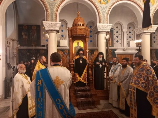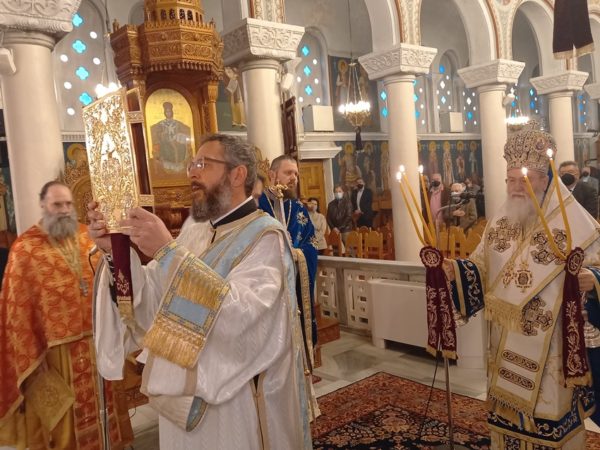 Στον πανηγυρίζοντα Ιερό Ναό του Αγίου Νικολάου Κορίνθου χοροστάτησε κατά τον Μέγα Πανηγυρικό Εσπερινό ο Θεοφιλέστατος Επίσκοπος Κεγχρεών κ. Αγάπιος, συγχοροστατούντος του Σεβασμιωτάτου Μητροπολίτου Κορίνθου, Σικυώνος, Ζεμενού, Ταρσού και Πολυφέγγους κ. Διονυσίου, το απόγευμα της Κυριακής, 5 Δεκεμβρίου 2021.