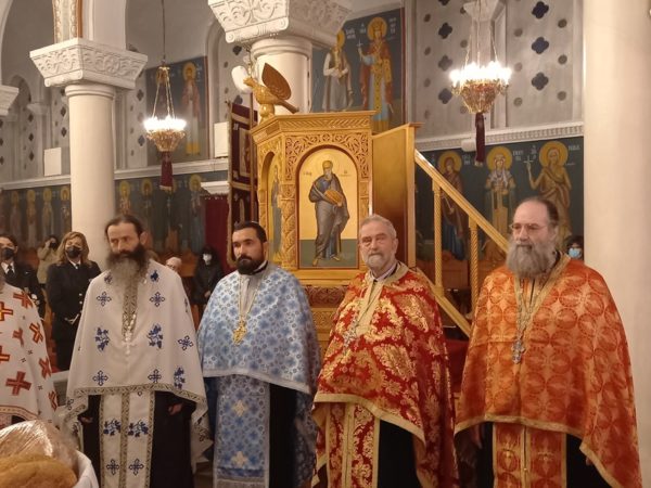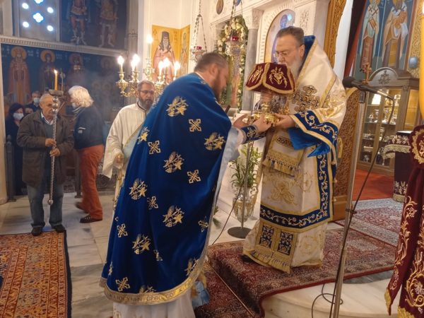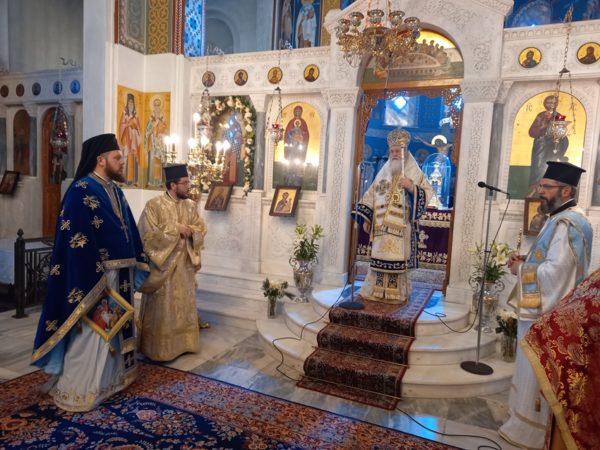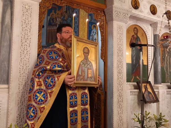 Η εφετινή εορτή του Αγίου Νικολάου βρίσκει την ανθρωπότητα σε μια τέτοια δυσκολία, καθώς η ζωή μας έχει καταστεί «μακρά οδός απανδόκευτος». Η οικονομική και η λοιμική κρίση, που ήρθαν διαδοχικά, μας επηρέασαν σε μεγάλο βαθμό, ωστόσο ο Άγιος Νικόλαος με τον βίο του και τα χαρακτηριστικά που ακούμε, όταν ψάλλεται το Απολυτίκιο του, μας παρουσιάζει μια άλλη, διαφορετική νοοτροπία. Ο Άγιος είναι «κανόνας πίστεως» και ο αληθινά πιστός άνθρωπος έχει όρους και όρια τα οποία δεν τα υπερβαίνει. Σέβεται τον συνάνθρωπό του, ως εικόνα του Θεού και θυσιάζεται γι’ αυτόν, όπως εξάλλου έπραξε και ο ίδιος ο Χριστός. Ο Άγιος Νικόλαος είναι «εἰκόνα πραότητος», καθώς αντιμετωπίζει τις δυσκολίες πάντα με πραότητα και μας καλεί να ηρεμήσουμε και να μιμηθούμε τον Χριστό ο Οποίος δίδαξε: «μάθετε ἀπ᾿ ἐμοῦ, ὅτι πρᾷός εἰμι καὶ ταπεινὸς τῇ καρδίᾳ, καὶ εὑρήσετε ἀνάπαυσιν ταῖς ψυχαῖς ὑμῶν·» (Ματ. ια΄, 29). Επίσης, ο Άγιος είναι «ἐγκρατείας Διδάσκαλος», καθώς όχι μόνο ζούσε με λίγα αλλά φρόντιζε με αυτά τα λίγα να ζουν και άλλοι έχοντας συλλάβει το νόημα της ζωής και διδάσκοντας μας όλους, πώς πρέπει να ζούμε, ώστε να βγούμε νικητές, σύμφωνα και με το όνομά Του. Ολοκλήρωσε την ομιλία του ευχόμενος «χρόνια πολλά και ευλογημένα» σε όλους, όσοι εόρταζαν, με πρώτο τον Προϊστάμενο του Ι. Ναού π. Νικόλαο Μπιθαρά.