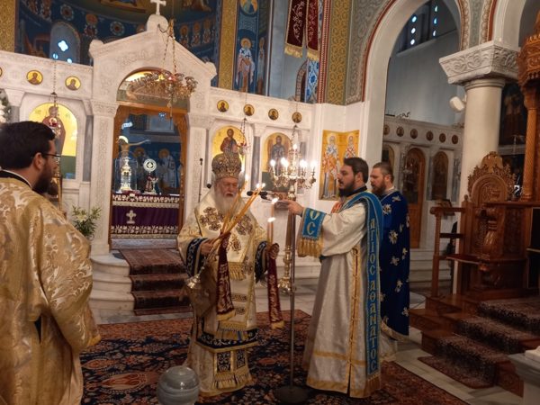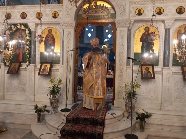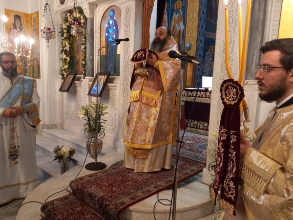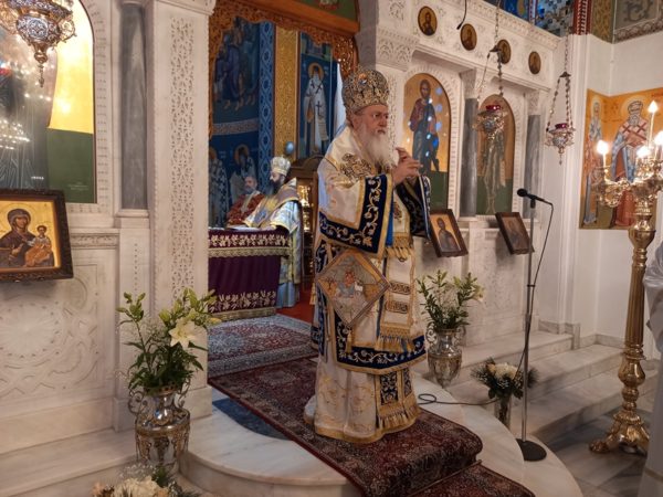 Στον λόγο του ο Σεβασμιώτατος επεσήμανε ότι οι Άγιοι, ως ζωντανές εικόνες του Ιησού Χριστού, αποτελούν για όλους παράδειγμα προς μίμηση και η βιωτή Τους μεταβάλλει την δική μας ζωή σε «πανηγύρι». Οι πρόγονοί μας, πολύ ορθά, φιλοσοφούσαν «Βίος ανεόρταστος μακρά οδός απανδόκευτος», εννοώντας ότι η ζωή είναι ένα ταξίδι, που όσο διαρκεί διδάσκει τον άνθρωπο. Μέσω της γνώσης και των διδαγμάτων του «ταξιδιού» αυτού προσφέρεται στον άνθρωπο η δυνατότητα να «ξεκουράζεται» και να βρίσκει το κουράγιο να συνεχίζει την ζωή του χωρίς να «κουράζεται» από τις δυσκολίες που πάντοτε και αναπόφευκτα παρουσιάζονται.