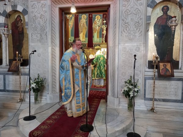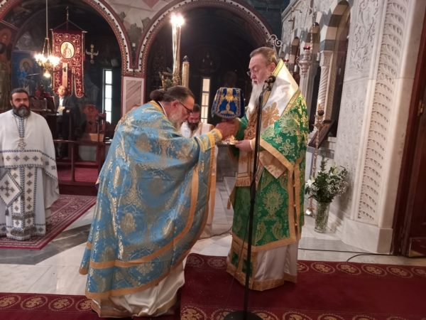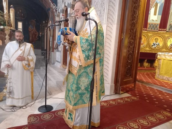 Τόνισε δε ότι, κατά το βάπτισμα μας συνταχθήκαμε με το Χριστό και απαρνηθήκαμε τον παλαιό άνθρωπο και την αμαρτία. Μας υπενθυμίζει ακόμα ο Τίμιος Πρόδρομος ότι, εάν δεν τηρούμε τις υποσχέσεις μας οφείλουμε να ακούσουμε το κήρυγμα Του για μετάνοια. Ολοκληρώνοντας, παρεκάλεσε τον Σεβασμιώτατο Ποιμενάρχη μας να δέεται υπέρ υγείας όλων, όσοι εορτάζουν σήμερα, ιδιαιτέρως για τον Λαμπαδάριο του Ι. Ναού κ. Ιωάννη Λιούντρη.