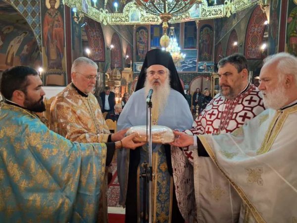 Στην ομιλία του ο Επίσκοπος Κεγχρεών με την ευκαιρία της εορτής της εισόδου της Θεοτόκου «εἰς τά Ἅγια τῶν Ἁγίων ἀνατραφῆναι Κυρίῳ» αναφέρθηκε στην ύπαρξη εντός των Αγίων και έξω από το καταπέτασμα της Σκηνής, που χώριζε τα Άγια των Αγίων από τα Άγια, της Τραπέζης της Προθέσεως, την Οποία κατασκεύασε ο Βεσελεήλ «ἐκ χρυσίου καθαροῦ» (Εξοδ. λη’, 9), της «πρός βορρᾶν» ευρισκομένης και επί της οποίας ο Μωϋσής «προέθηκεν … ἄρτους τῆς προθέσεως ἔναντι Κυρίου, ὅν τρόπον συνέταξε Κύριος …» (Εξοδ. μ’, 20-21). Αυτή η χρυσή Τράπεζα «άψυχη» μεν συμβόλιζε την Παρθένο Μαριάμ, που ανεδείχθη κατά τον θεοφώτιστο υμνογράφο Ιωσήφ, ποιητή του ειδικού Κανόνος που συνοδεύει τον Ακάθιστο Ύμνο και χαρακτηρίζεται αυτός ως ποιητικό αριστούργημα, εξυμνών την Αειπάρθενο Κόρη ως «Χριστοῦ βίβλον ἔμψυχον», «παλάτιον τοῦ μόνου Βασιλέως», «θρόνον πυρίμορφον τοῦ Παντοκράτορος», «πυρίμορφον ὄχημα τοῦ Λόγου», «ἄφλεκτον βἀτον», «ῥάβδον μυστικήν», «στύλον πύρινον» κ.τ.τ., «ἔμψυχος τράπεζα, ἄρτον ζωῆς χωρήσασα»! Διότι επ᾽ Αυτής δεν ετοποθετήθησαν οι 12 άρτοι της Προθέσεως αλλά εκάθησε και αναπαύθηκε Αυτός Ούτος ο Χριστός, που είναι ο Άρτος της ζωής «ὁ καταβάς ἐκ τοῦ οὐρανοῦ» (Ιω. στ’, 41)! Έγινε Αυτή, που αξιώθηκε τόσο μεγάλης τιμής, το μέσον δια του οποίου ήλθε ο Χριστός στην γη για να προσφέρει το Τίμιο Σώμα Του και το Άχραντο Αίμα Του «εἰς ἄφεσιν «ἁμαρτιῶν καί ζωήν αἰώνιον». « Ὁ τρώγων μου τήν σάρκα καί πίνων μου τό αἷμα ἔχει ζωήν αἰώνιον… Διότι η σάρκα μου είναι η αληθινή και πραγματική τροφή, από την οποία ο πιστός δεν παίρνει μόνο προσωρινή και πρόσκαιρη ενίσχυση και ζωή˙ και το αίμα μου είναι αληθινό ποτό, που δεν ικανοποιεί πρόσκαιρα μόνο την δίψα του ανθρώπου, αλλά τον χορταίνει αιωνίως. Ὁ τρώγων μου τήν σάρκα καί πίνων μου τό αἷμα ἐν ἐμοί μένει, κἀγώ ἐν αὐτῷ» (Ιω. στ’, 54–56). Τούτων ένεκα η συμμετοχή των Πιστών στο Μυστήριο της Θείας Κοινωνίας είναι σωτήριος ανάγκη. Δεν είναι ένα καθήκον ή μία υποχρέωση. Ο ενσυνείδητα Πιστός δεν κοινωνεί των Αχράντων Μυστηρίων για το καλό του χρόνου, για τα χρόνια πολλά ή γιατί πιέζεται από ανάγκες προσωπικές, οικογενειακές ή κοινωνικές… Η συμμετοχή στην Θεία Ευχαριστία είναι Κυριακή εντολή, είναι αδήριτος ανάγκη της ψυχής, είναι ο πόθος και η προσμονή κάθε Χριστιανού όπως «μέχρι τελευταίας του ἀναπνοής ἀκατακρίτως ὑποδέχηται τῶν ἀχράντων Μυστηρίων τόν ἁγιασμόν εἰς ἵασιν ψυχῆς τε καί σώματος». Και μ᾽ αυτό το «ἐφόδιον ζωῆς αἰωνίου» επιθυμεί ν᾽ απέλθει εκ του κόσμου τούτου φέρων εντός του τα σπέρματα της αναστάσεως, που «ἡ τεκοῦσα τό ἀληθινόν φῶς» Παναγία Δέσποινα προσέφερε στο ανθρώπινο γένος δια του ασπόρου τόκου Της η Κεχαριτωμένη, αναδειχθείσα Αυτή τω όντι «ζωή μυστικῆς εὐωχίας»!