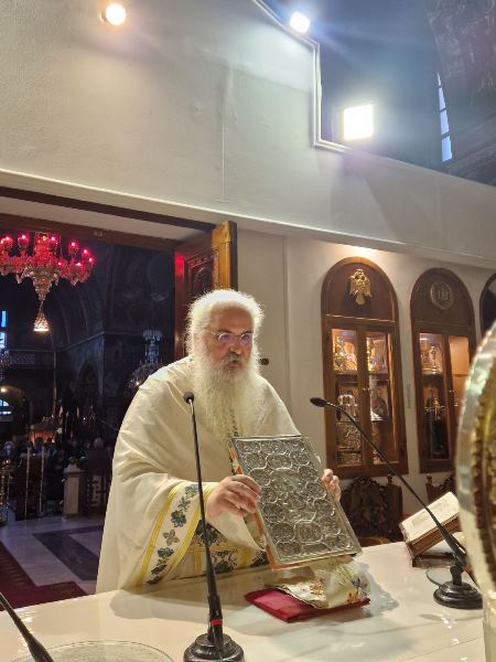Ολοκλήρωσε δε το κήρυγμά του ο Θεοφιλέστατος Πρωτοσύγκελλος, μεταφέρων ευχές και ευλογίες του Σεβασμιωτάτου Ποιμενάρχου μας κ. Διονυσίου στο εκκλησίασμα για «καλό υπόλοιπο Τεσσαρακοστής», «καλά Χριστούγεννα» και όπως δι᾽ αγίων ευχών του αξιωθούμε οι πάντες «ἵνα ἐν καθαρῷ τῷ μαρτυρίῳ τῆς συνειδήσεως ἡμῶν τῶν ἁγιασμάτων τήν μερίδα ὑποδεχόμενοι ἑνωθῶμεν τό ἁγίῳ Σώματι καί Αἵματι τοῦ Χριστοῦ καί ἔχομεν ἐν ἡμῖν Αὐτόν κατοικοῦντα καί μένοντα, σύν τῷ Πατρί καί τῷ Ἁγίῳ Πνεύματι».
