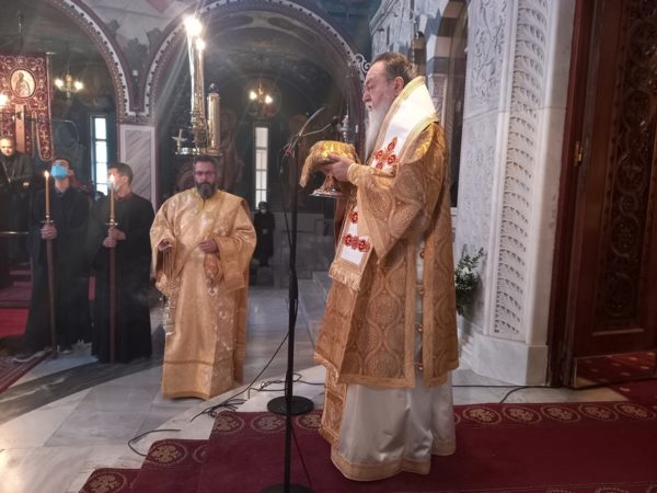 Ο Σεβ. Ποιμενάρχης, λίγο πριν την απόλυση της Θ. Λειτουργίας, μίλησε για τους Τρεις Ιεράρχες και το έργο Τους, επισημαίνοντας ότι η Εκκλησία μας εορτάζει την σύναξη Τους, προκειμένου να αποφύγει την μεταξύ τους σύγκριση και να δίδει παράδειγμα ενότητας, πίστεως αλλά και να αποδίδει την δέουσα αναγνώριση στην επιστήμη, αφού στα πρόσωπά Τους δοξάζεται ταυτόχρονα ο Θεός, η πίστη και η επιστήμη. Δεν είναι τυχαίο ότι 1.700 χρόνια μετά οι Τρεις Ιεράρχες εξακολουθούν να είναι οι «Μέγιστοι Φωστήρες της Τρισηλίου Θεότητος» και «Οικουμενικοί Διδάσκαλοι».