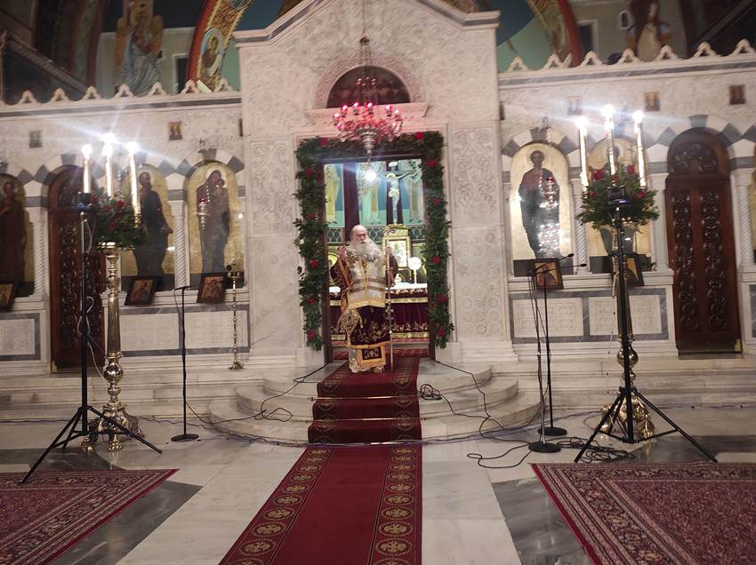 Την Ποιμαντορική εγκύκλιο για τα Χριστούγεννα του Ποιμενάρχου κ. Παύλου, ανέγνωσε ο Πανοσ. Αρχιμ. π. Δαμασκηνός Γεννηματάς, ενώ ο σεπτός Ποιμενάρχης απηύθηνε στο τέλος της Θ. Λειτουργίας τις πατρικές ευχές του για τα Χριστούγεννα.
