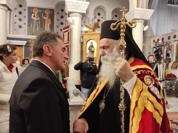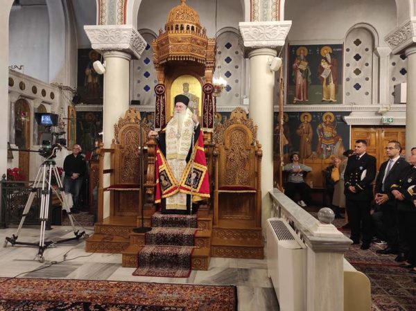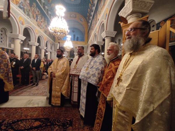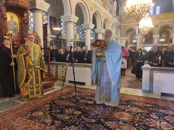 Στο τέλος της Θ. Λειτουργίας ο Σεβασμιώτατος Ποιμενάρχης ευχήθηκε σε όλους τους εορτάζοντες, κάνοντας δε ιδιαίτερη μνεία στον Προϊστάμενο του Ι. Ναού π. Νικόλαο Μπιθαρά ως και στον Δήμαρχο Κορινθίων κ. Νικόλαο Σταυρέλη, τον οποίο και επισκέφθηκε ευθύς αμέσως μετά στο Δημαρχείο Κορίνθου, κομίζοντας ευχές και ευλογίες.