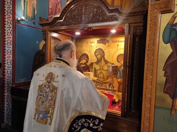 Την επομένη το πρωί ο Σεβ. Μητροπολίτης προεξήρχε της Πανηγυρικής Θείας Λειτουργίας στον ως άνω Ιερό Ναό και μαζί Του λειτούργησαν ο Πανοσ. Αρχιμ. π. Άνθιμος Παπαλεξόπουλος, Ιεροκήρυκας της Ιεράς Μητροπόλεως και Καθηγούμενος της Ι. Μονής Παναγίας Η Πάντων Χαρά, ο οποίος και διηκόνησε τον Ιερό Άμβωνα, ο Πανοσ. Αρχιμ. π. Δαμασκηνός Γεννηματάς, Εφημέριος του Καθεδρικού Ιερού Ναού Αποστόλου Παύλου Κορίνθου, ο Αιδεσ. Πρωτ/ρος π. Γρηγόριος Θεοδώρου, συνταξιούχος Κληρικός της Ι. Μητροπόλεως μας, οι Εφημέριοι του Ι. Ναού Αιδεσ. Πρωτ/ροι π. Νικόλαος Μπιθαράς και π. Δημήτριος Παπαγεωργίου και οι Διάκονοι π. Χρήστος Χίλιας και π. Σωτήριος Κουτσούρης.