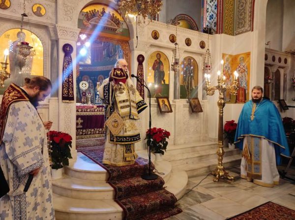 Στον πανηγυρίζοντα Ιερό Ναό Αγίου Νικολάου Κορίνθου χοροστάτησε κατά τον Μέγα Πανηγυρικό Εσπερινό ο Σεβασμιώτατος Μητροπολίτης Κορίνθου κ. Παύλος, πλαισιούμενος από τους εφημερίους του Ι. Ναού και ιερείς από την Κόρινθο και άλλες πόλεις.