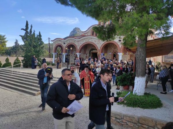 Στην ομιλία του ο Επίσκοπος Κεγχρεών αναφέρθηκε στην ευλογημένη συγκυρία στην μνήμη του Οσίου Γερασίμου να αναγινώσκηται εφέτος το Ιερό Ευαγγέλιο της θεραπείας του δαιμονισμένου Γαδαρηνού και να πραγματοποιείται επακριβώς το Κυριακό λόγιο: «ὁ πιστεύων εἰς ἐμέ, τὰ ἔργα ἃ ἐγὼ ποιῶ κἀκεῖνος ποιήσει, καὶ μείζονα τούτων ποιήσει» (Ιω. ιδ’, 12), αφού ένα από τα ιδαίτερα χαρίσματα του εκ Κορινθίας καταγομένου Οσίου Γερασίμου είναι η θεραπεία των δαιμονόντων. Με αφορμή δε τα ως άνω έκανε την αντιδιαστολή μεταξύ του δαιμονισμού και της δαιμονοποιήσεως ενός ανθρώπου. Πως του πρώτου καταλαμβάνονται από τα πονηρά πνεύματα το σώμα και οι λειτουργίες αυτού, ενώ η ψυχή παραμένει ανέπαφη, γι᾽ αυτό και η Εκκλησία προσφέρει την Θεία Κοινωνία και σε δαιμονισμένους πλην της περιπτώσεως κατά την οποία αυτοί βλασφημούν (π.χ. την θεότητα του Ιησού…), ενώ ο δεύτερος είναι αυτός που δουλεύει στα πάθη του και εκούσια αμαρτάνει απομακρυνθείς θεληματικά του Θεού, γι᾽ αυτό χρήζει Μετανοίας και Εξομολογήσεως. Εστιάσας δε στις Ευαγγελικές φράσεις του Ιερού Αναγνώσματος  «…εὗρον καθήμενον τὸν ἄνθρωπον… ἱματισμένον καὶ σωφρονοῦντα παρὰ τοὺς πόδας τοῦ Ἰησοῦ, καὶ ἐφοβήθησαν» (Λουκ. η’, 35) «…καὶ ἠρώτησαν αὐτὸν ἅπαν τὸ πλῆθος τῆς περιχώρου τῶν Γαδαρηνῶν ἀπελθεῖν ἀπ᾿ αὐτῶν, ὅτι φόβῳ μεγάλῳ συνείχοντο…» (ενθ. ανωτ., στιχ.37) αντιδιέστειλε τον «εισαγωγικόν φόβον» από τον «φόβο των τελείων». Ο πρώτος είναι αυτός που προκαλείται εκ της επιγνώσεως των αμαρτιών μας και προέρχεται από τον φόβο της κολάσεως, ο οποίος και φέρει καρπό «ἐν τριάκοντα» (Μαρκ. δ’, 20). Ο δεύτερος, ο και «αγνός» επικαλούμενος, είναι αυτός «ὁ ἀεί συνεζευγμένος τῇ ἀγάπῃ», ο οποίος και φέρει καρπό «ἐν ἑκατόν» (ενθ. ανωτ.). Και οι δύο όμως είναι «γῆ καλὴ» και «ἀκούουσι τὸν λόγον καὶ παραδέχονται» (ενθ. ανωτ.) σε αντιδιαστολή με τους Γαδαρηνούς, που ο φόβος τους δεν απέβλεπε στην διόρθωσή τους για την παρανομία τους έναντι στον Μωσαϊκό Νόμο να εκτρέφουν χοίρους, αλλ᾽ εφοβήθησαν την απώλεια του κέρδους και την υφιστάμενη ζημία εκ του πνιγμού των χοίρων. Ευχήθηκε δε στην Ηγουμένη του Ιερού Ησυχαστηρίου Γερόντισσα Ιωάννα Μοναχή, στην συνοδεία της και στους πολυπληθείς προσκυνητές, με τις ευχές του Σεβασμιωτάτου Μητροπολίτη Κορίνθου κ. Διονυσίου, «ο ιώμενος τους δαιμονόντας» Άγιος Γεράσιμος να πρεσβεύει υπέρ της απαλλαγής όλων μας από τα πάθη, στα οποία δουλεύουμε, και της εμφυτεύσεως στις καρδιές μας και του «εισαγωγικού φόβου» για να οδηγηθούμε στην Μετάνοια και που η αγάπη «ἔξω βάλλει» αυτόν (πρβλ. Α’ Ιω. δ΄, 18) πολλώ δε μάλλον του «φόβου των τελείων», ώστε δια της αποκτήσεως των αρετών και δη της αγάπης της πάντοτε συνεζευγμένης μετά του φόβου, κατά τον Άγιο Μάξιμο τον Ομολογητή, να αξιωθούμε οι πάντες της Βασιλείας του Πατρός και του Υιού και του Αγίου Πνεύματος. Αμήν.