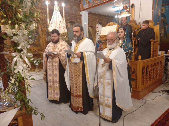 Στο κήρυγμά του ο σεπτός Ποιμενάρχης μας αναφέρθηκε στην θυσιαστική ταπεινότητα του Προσώπου της Παναγίας μας. Η Εκκλησία μας, ως Χριστοκεντρική, αφού ο μόνος Σωτήρας και Λυτρωτής του κόσμου είναι ο Ιησούς Χριστός, έχει στην Αγία Γραφή ελάχιστες αναφορές στην Παναγία μας, ώστε να μην υπάρχουν προσωποληψίες. Η ίδια η Παναγία ακολούθησε την ίδια πορεία που ακολούθησε και ο Τίμιος Πρόδρομος, δηλαδή περιθωριοποιήθηκε ιδία βουλήσει κατά το Ευαγγελικό, «ἐκεῖνον δεῖ αὐξάνειν, ἐμὲ δὲ ἐλαττοῦσθαι» (Ιω. Γ΄, 30), προκειμένου όλοι να ακολουθήσουν μόνον τον Χριστό. Ωστόσο, οφείλουμε να τιμούμε και να σεβόμαστε την Μητέρα του Χριστού, που αποτελεί το ανώτερο όριο Αγιότητας και να Την αισθανόμαστε ως βοηθό, αντιλήπτορα και μεσίτρια που πρεσβεύει στον Υιό Της για την σωτηρία της ψυχής μας!