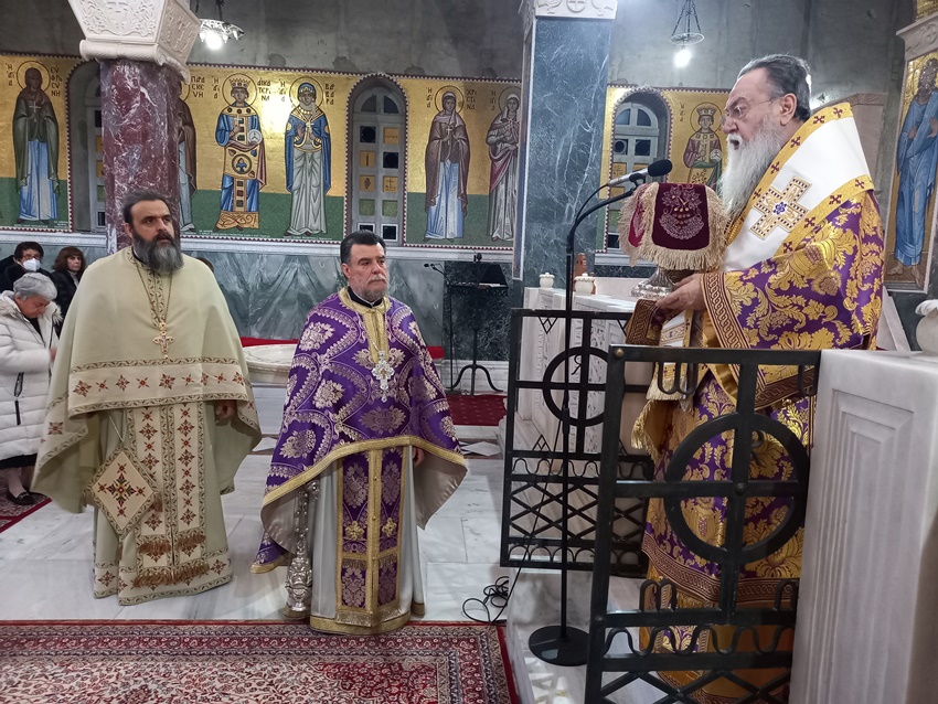 Η πίστη και η αγάπη οφείλουμε να αποτελούν τους οδηγούς μας στην ζωή. Καθώς παρατηρούμε ότι οι τραγωδίες, τα δυστυχήματα και τα φυσικά φαινόμενα γίνονται «παιδαγωγοί» μας, ώστε να δείχνουμε την αγάπη μας και να ξεχωρίζουμε απ’ όσους αγαπούν μόνο τον εαυτό τους και τα συμφέροντά τους, επιβάλλεται να συνδυάζουμε την νηστεία με την πίστη, την αγάπη και την φιλανθρωπία για να διαφέρουμε από τους ιδιοτελείς Φαρισαίους. Πριν την απόλυση ο Σεβασμιώτατος τέλεσε το εξάμηνο Μνημόσυνο της μακαριστής Μαρίας Αγγελατοπούλου.