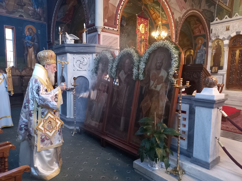 Ο Σεβασμιώτατος μας στην σύντομη αναφορά του ευχαρίστησε τους καθηγητές, τους διδασκάλους, τους μαθητές και τους γονείς τους που τίμησαν την μνήμη των Προστατών της Ελληνικής Παιδείας και των Γραμμάτων με την παρουσία τους στον Εκκλησιασμό.