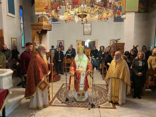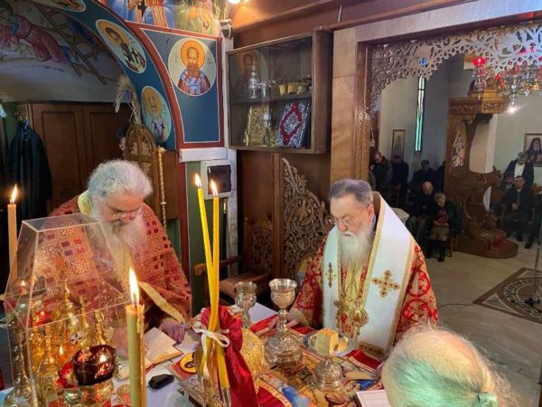 Ο Σεβασμιώτατος πλαισιώθηκε από τον Πνευματικό της Ι. Μονής Πανοσ. Αρχιμ. π. Άνθιμο Παπαλεξόπουλο, Ιεροκήρυκα της Ι. Μητροπόλεως μας και Ηγούμενο της Ι. Μονής Παναγίας «Πάντων Χαρά» και τους αδελφούς της Ι. Μονής Παναγίας «Πάντων Χαρά» Οσ. Ιερομ. π. Παντελεήμονα Λιλιόπουλο και π. Δαμασκηνό Γεννηματά, Αρχιδιάκονο της Ι. Μητροπόλεως.