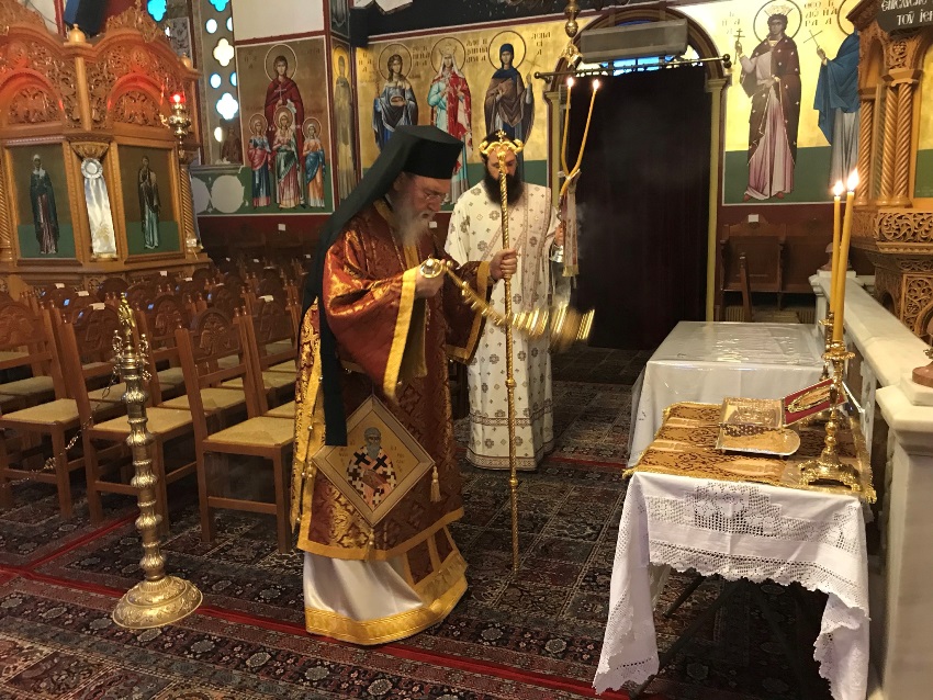 Λίγο πριν το πέρας της Θ. Λειτουργίας ο Σεβασμιώτατος διάβασε ενώπιον του αποτμήματος του Ι. Λειψάνου του Αγίου Διονυσίου ευχές υπέρ της αναρρώσεως των ασθενούντων εκ της λοιμικής νόσου και εδεήθη όπως ο Αποστολικός Πατήρ Άγιος Ιερομάρτυς Διονύσιος πρεσβεύει υπέρ της σωτηρίας των Κορινθίων και του κόσμου ολόκληρου!