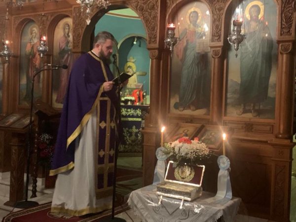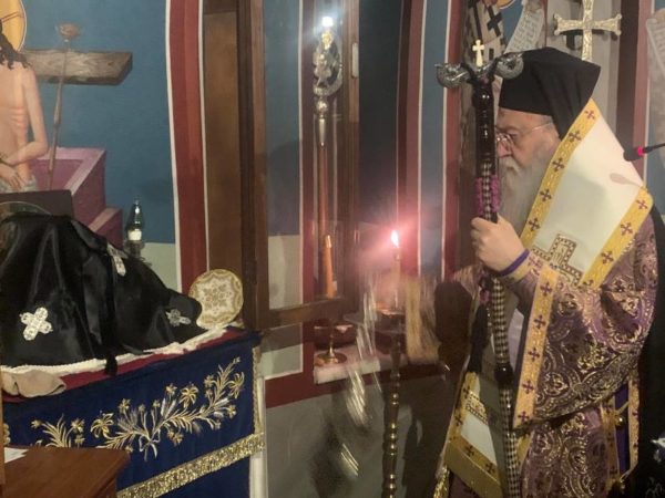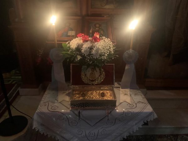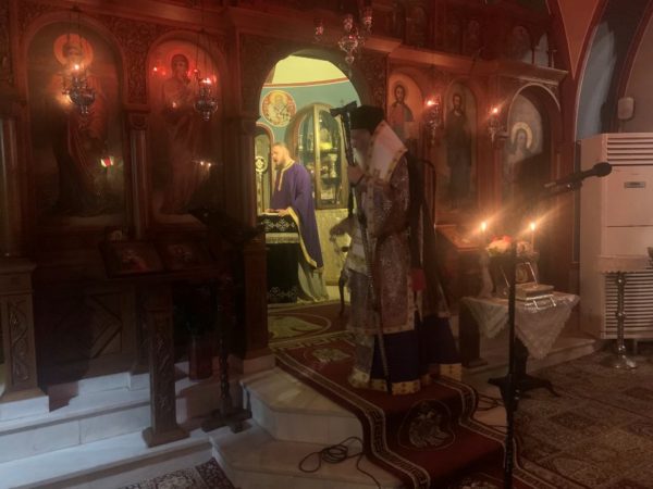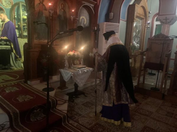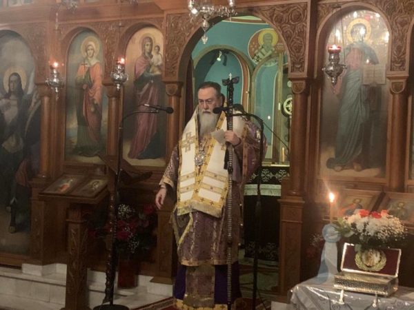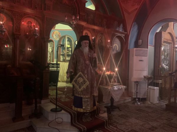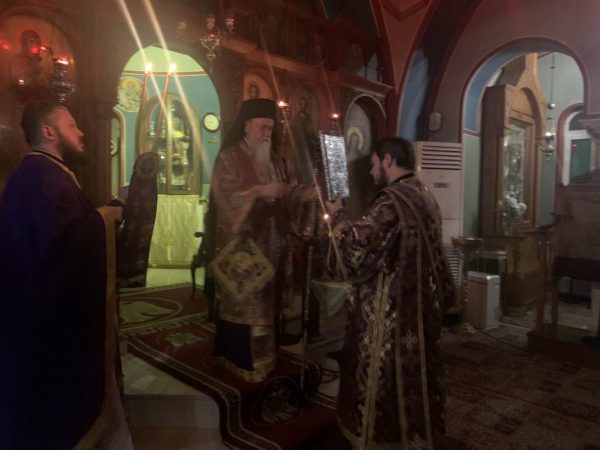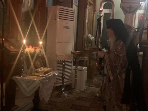 Τον Ποιμενάρχη πλαισίωσαν ο Πανοσ. Αρχιμ. π. Αρκάδιος Ραζνύ και ο Αρχιδιάκονος της Ι. Μητροπόλεώς μας π. Δαμασκηνός Γεννηματάς, το Ιεροψαλτικό Αναλόγιο εκόσμησαν ο Διάκονος π. Χρήστος Χίλιας και ο κ. Ρωμανός Νικολάου, ενώ ετέθη προς προσκύνηση απότμημα εκ των Ι. Λειψάνων του Αγίου.