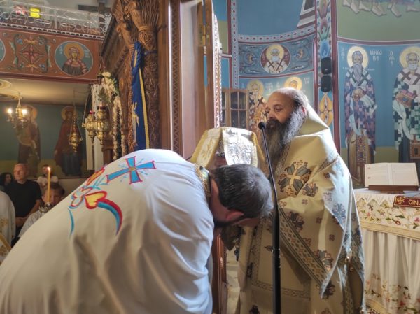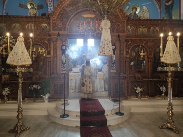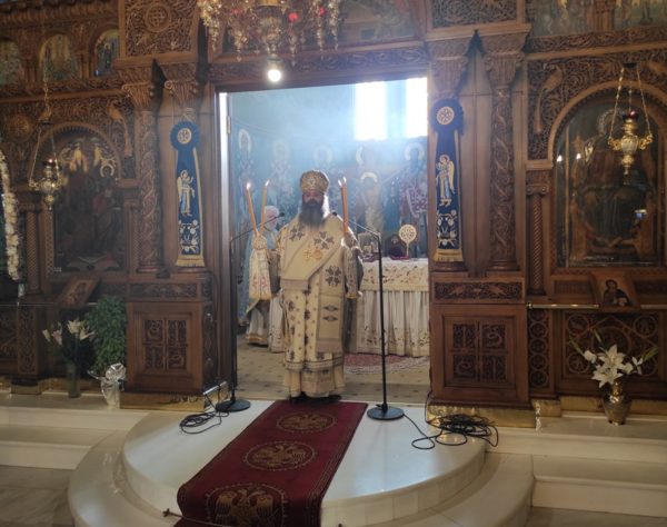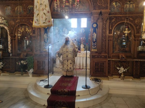 Στρεφόμενος δε ο Θεοφιλέστατος προς τον Σεβασμιώτατο τον παρακάλεσε να εύχεται Αρχιερατικώς, ώστε χαρά να κατακλύζει τις καρδιές μας ένεκα της αγάπης και του πόθου να ενωθούμε με το «άκρως εφετόν», τον Νυμφίο της ψυχής μας, να μη χάνουμε τον στόχο της ζωής μας, τον σκοπό όλης της δημιουργίας, που είναι η μετοχή μας στην ζωή του Χριστού και την θεία μακαριότητα Του, για ν’ απολαμβάνουμε στο διηνεκές, στους απέραντους αιώνες, το κάλλος του Προσώπου Του, όχι «εν αινίγματι» ούτε ως «εν εσόπτρω» αλλά «πρόσωπον προς πρόσωπον», καθώς και την υπερκόσμια ωραιότητα, την αίγλη της όψεως του Θεομητορικού Προσώπου της «Μητέρας της ζωής», της Παναγίας Μητέρας Του, της Μητέρας πάντων ημών!