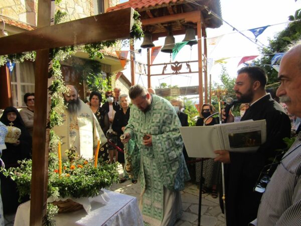 Συγκεκριμένα την παραμονή της εορτής το εσπέρας, Κυριακή 13 Σεπτεμβρίου 2020, ο Θεοφιλέστατος Επίσκοπος Κεγχρεών κ. Αγάπιος, απουσιάζοντος του Σεβ. Μητροπολίτου κ. Διονυσίου στο Αγιώνυμο Όρος Άθω, για την Πανήγυρη της Καταθέσεως της Αγίας Ζώνης στην Ι. Μονή Βατοπαιδίου, τέλεσε τον Μέγα Πανηγυρικό Εσπερινό στο πανηγυρίζον Ι. Ησυχαστήριο του Τιμίου Σταυρού Μαψού, πλαισιούμενος από Ιερείς της Ι. Μητροπόλεως και από άλλες Ι. Μητροπόλεις, ο οποίος και ομίλησε στο πολυπληθές Εκκλησίασμα, αναφερόμενος στον Τίμιο Σταυρό κατά την αρχή της ανθρώπινης ιστορίας με το «πρωτευαγγέλιον», κατά την διάρκεια των χρόνων της Π. Διαθήκης με τις λεγόμενες προτυπώσεις του Τ. Σταυρού, κατά το μέσον της ιστορίας με αυτή ταύτη την Σταύρωση του Σωτήρος Χριστού στον φρικτό Γολγοθά, με την συνέχιση της χρήσεως του συμβόλου του Τ. Σταύρου στην ζωή της Εκκλησίας, με την παρουσία Αυτού στο τέλος της ιστορίας «τότε φανήσεται τὸ σημεῖον τοῦ υἱοῦ τοῦ ἀνθρώπου ἐν τῷ οὐρανῷ» (Ματθ. κδ΄, 30), αλλά και προαιωνίως στην Βουλή του θεού κατά τους λόγους του Απ. Πέτρου «ὅτι οὐ φθαρτοῖς, ἀργυρίῳ ἢ χρυσίῳ, ἐλυτρώθητε ἐκ τῆς ματαίας ὑμῶν ἀναστροφῆς πατροπαραδότου, ἀλλὰ τιμίῳ αἵματι ὡς ἀμνοῦ ἀμώμου καὶ ἀσπίλου Χριστοῦ, προεγνωσμένου μὲν πρὸ καταβολῆς κόσμου» (Πέτρου Α, α΄, 18), μεταφέρων τις ευχές του Σεβ. Ποιμενάρχου τόσο στους ευλαβείς προσκυνητές όσο και στην Αδελφότητα του Ι. Ησυχαστηρίου.