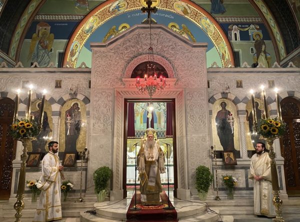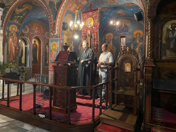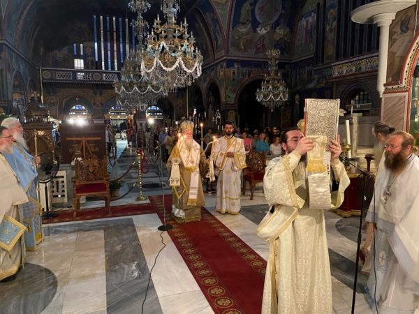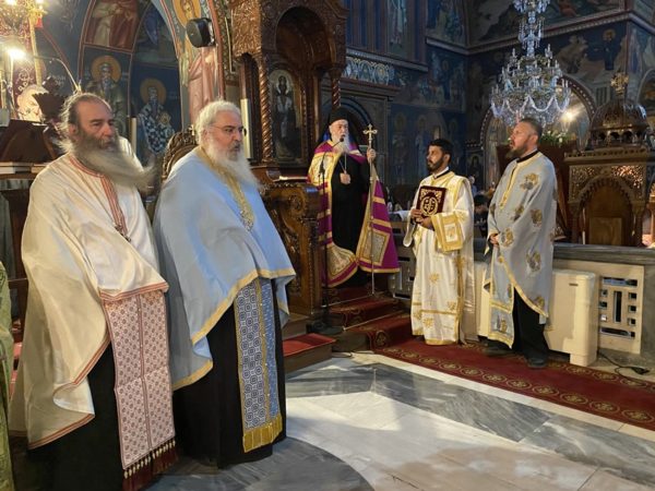 Τα Ιεροψαλτικά αναλόγια κόσμησαν ο Διευθυντής της Σχολής Βυζαντινής Μουσικής «ΑΓΙΟΣ ΛΕΩΝΙΔΗΣ» της Ι. Μητροπόλεως Αιδεσ. Πρωτ/ρος π. Αθανάσιος Κοντογιάννης, ο Λαμπαδάριος του Καθεδρικού Ι. Ναού Απ. Παύλου κ. Ιωάννης Λιούντρης και ο κ. Μιχαήλ Χαρίτος.