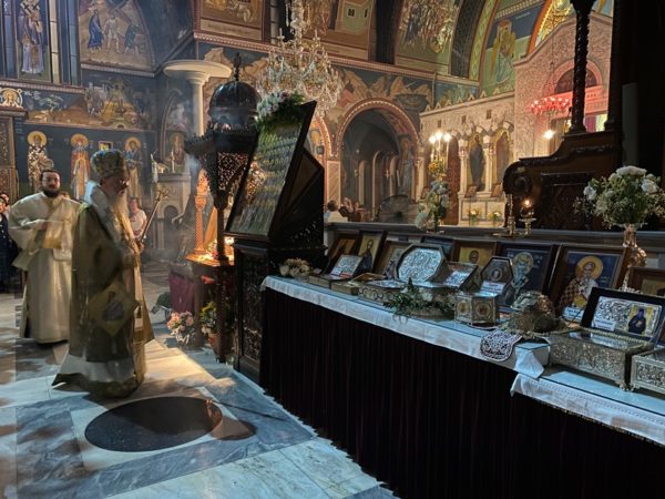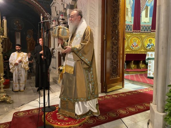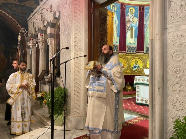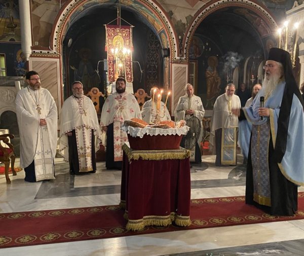 Προ της απολύσεως της Θ. Λειτουργίας ο Προϊστάμενος του Ι. Ναού και Αρχιερατικός Επίτροπος Κορίνθου – Λουτρακίου Αιδεσ. Πρωτ/ρος π. Παναγιώτης Μαυραγάνης ανακοίνωσε στους Πιστούς το Πρόγραμμα της Πανηγύρεως του Πολιούχου μας και Ιδρυτού της Τοπικής μας Εκκλησίας Αποστόλου Παύλου, ενώ ο Θεοφιλέστατος Πρωτοσύγκελος της Ι. Μητροπόλεως, Επίσκοπος Κεγχρεών κ. Αγάπιος απηύθυνε ευχές προς τους αγρυπνήσαντες Πιστούς κατά την Ι. Παννυχίδα.