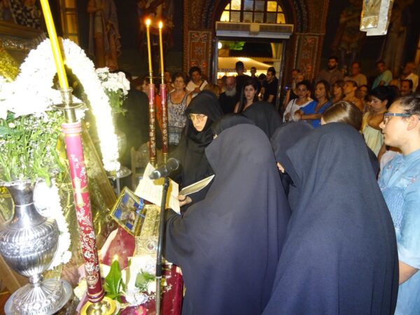 Στην Ι. Αγρυπνία τα Ιεροψαλτικά αναλόγια κόσμησαν καλλίφωνοι χοροί εκ των Μοναζουσών της Ι. Μητροπόλεώς, προσφέροντας στο πλήθος των συμπροσευχομένων Πιστών και των ευλαβών προσκυνητών την δυνατότητα της «εν κατανύξει» συμμετοχής τους και της πνευματικής ανατάσεώς τους.