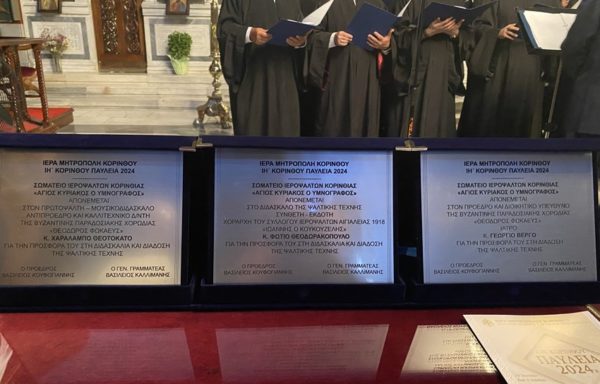 Μετά το πέρας της Εκδηλώσεως ο Ποιμενάρχης κ. Διονύσιος απένειμε τιμητικές πλακέτες στους προσκεκλημένους Χοράρχες και στις χορωδίες που συμμετείχαν για την παρουσία τους στην ΙΗ’ Σύναξη Βυζαντινών Εκκλησιαστικών Χορωδιών και μαζί με τις θερμές ευχαριστίες του και τα συγχαρητήριά του, για την απόδοση των Εκκλησιαστικών ύμνων, ευχαρίστησε και τους Μητροπολίτες τους Σεβ. Μητροπολίτη Καλαβρύτων και Αιγιαλείας κ. Ιερώνυμο, Πατρών κ. Χρυσόστομο για την άδεια και ευλογία της εδώ παρουσίας τους, ως και για την «κάλυψη» της εκδηλώσεως από τον τηλεοπτικό και ραδιοφωνικό σταθμό της Ι. Μητροπόλεως Πατρών «ΛΥΧΝΟΣ». Προσκάλεσε δε, τους παρισταμένους να συμμετάσχουν και στις υπόλοιπες εκδηλώσεις των «ΙΗ΄ ΚΟΡΙΝΘΟΥ ΠΑΥΛΕΙΩΝ 2024», αποδίδοντας την δέουσα τιμή στον Απόστολό μας Άγιο Παύλο.