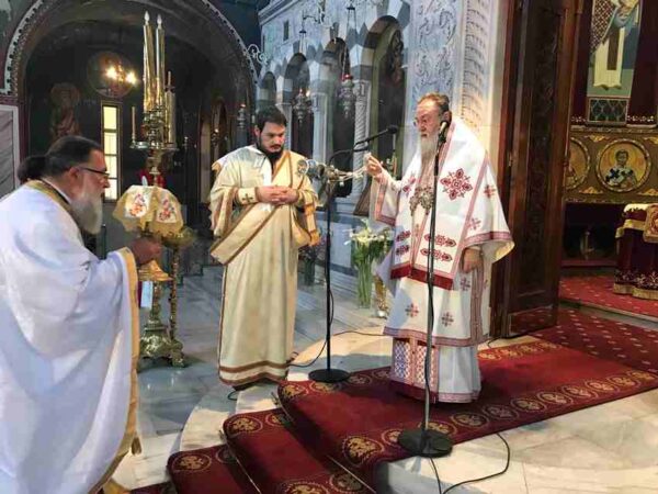 την Κυριακή των Μυροφόρων, δεόμενος και αυτός υπέρ υγείας, σωτηρίας και φωτισμού πάντων των ανθρώπων υπέρ ενισχύσεως και προστασίας των ιατρών, του νοσηλευτικού προσωπικού και των εργαζομένων στα νοσηλευτικά ιδρύματα και υπέρ αναπαύσεως των υπό της λοιμικής ασθενείας κοιμηθέντων αδελφών.
