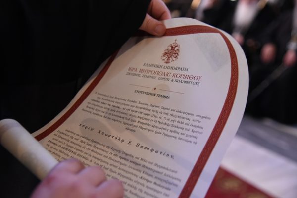 Εξ ονόματος όλων των Κορινθίων, ευχαρίστησε θερμά τον προεξάρχοντα Σεβ. Μητροπολίτη Χαλκίδος κ. Χρυσόστομο για την ευλογία, που παρείχε στο πλήρωμα της τοπικής Εκκλησίας με την τέλεση της Θ. Λειτουργίας και ονομαστικώς τους προσκεκλημένους Αρχιερείς για την άκρως τιμητική παρουσία τους. Επίσης στο πρόσωπο του Δημάρχου Κορινθίων κ. Νανόπουλου ευχαρίστησε τις Αρχές του τόπου για την συνδρομή τους και στο πρόσωπο του Πρωτοσυγκέλλου της Ι. Μητροπόλεως μας, Επισκόπου Κεγχρεών κ. Αγαπίου όλους τους εργαζομένους στην Ι. Μητρόπολή μας. Ιδιαιτέρως δε ευχαρίστησε τον Κορίνθιο Υφυπουργό Περιβάλλοντος και Ενέργειας κ. Νικόλαο Ταγαρά για την προσωπική μέριμνα και το ενδιαφέρον του για την ολοκλήρωση σημαντικών κτιριακών έργων της Ι. Μητροπόλεως Κορίνθου.