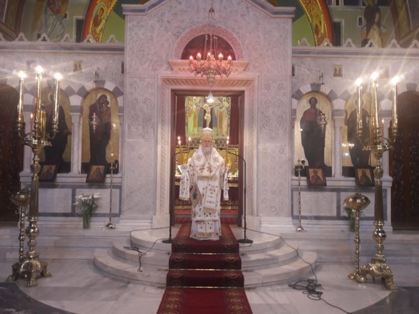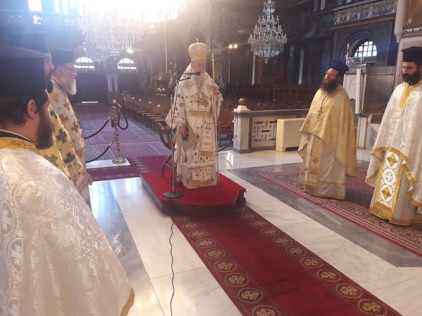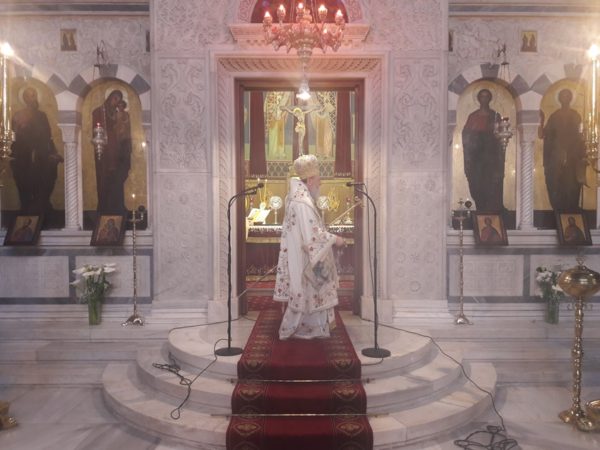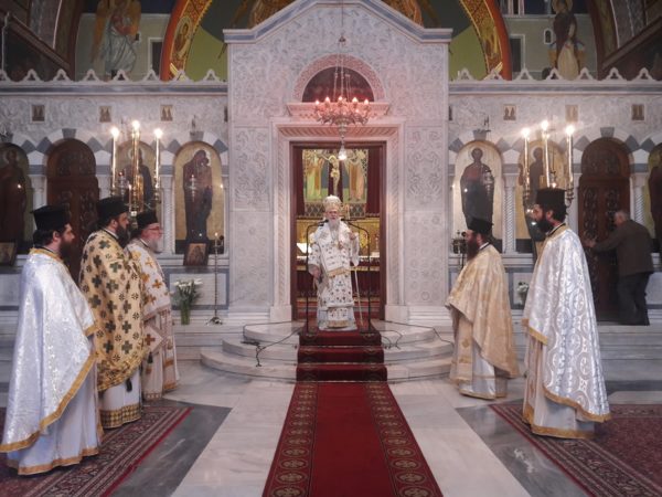 Το απόγευμα της ίδια μέρας και στον ως άνω Ι. Ναό, ο Σεβασμιώτατος τέλεσε τον Α’ Κατανυκτικό Εσπερινό, γνωστό ως Εσπερινό της «Συγγνώμης». Παρά το γεγονός ότι εφέτος, λόγω της υγειονομικής κρίσης, ο Ι. Ναός δεν κατακλύστηκε από τους Πιστούς, όπως συνέβαινε όλα τα προηγούμενα χρόνια, ώστε όλοι μαζί να λάβουν και να δώσουν την αμοιβαία συγχώρηση, προκειμένου καθαροί από παντός μολυσμού σαρκός και πνεύματος, άξια να εισέλθουν στο στάδιο των πνευματικών αγώνων της Μ. Τεσσαρακοστής ο Ποιμενάρχης διάβασε την συγχωρητική ευχή εκ του Ι. Ευχολογίου και ομίλησε ερμηνεύοντας εκ του τροπάριου του Κατανυκτικού Εσπερινού τον στίχο: «Ημάρτομέν σοι, σώσον, ως πάλαι Νινευϊτας, Χριστέ Βασιλεύ, καί κοινωνούς ημάς, ουρανίου Βασιλείας ποίησον εύσπλαγχνε». Επεξήγησε ότι, το τροπάριο αυτό μας μεταφέρει από την Παλαιά Διαθήκη και τον Προφήτη Ιωνά, στην Καινή Διαθήκη προεικονίζοντας την Σταύρωση και την τριήμερο Ανάσταση του Χριστού και καταδεικνύοντας το μεγαλείο της μετάνοιας και της συγχωρητικότητας που σώζει τον άνθρωπο με την πρόνοια του Θεού. Οι Νινευΐτες, αμαρτωλοί όντες, ακούγοντας τον Ιωνά μετανόησαν από τον Βασιλέα έως και τον τελευταίο πολίτη. Ακολούθως προσαρμόστηκαν στις εντολές του Θεού, που μέσω του Ιωνά έλαβαν και ο Θεός δέχτηκε την ειλικρινή μετάνοιά τους και τους έσωσε. Κατά αυτόν τον τρόπο κ᾿ εμείς οι Πιστοί οφείλουμε να προσελκύσουμε το έλεος του Θεού με ειλικρινή μετάνοια, ώστε ασφαλείς και ευλογημένοι να σώσουμε την ψυχή μας κατά το μέγα Έλεος Του!