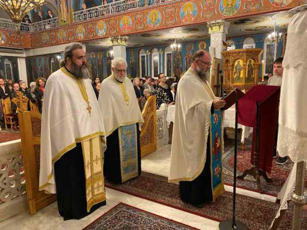 Στον Ι. Ναό Κοιμήσεως της Θεοτόκου Ιωνίας (Συνοικισμού) Κορίνθου χοροστάτησε ο Σεβ. Μητροπολίτης κ. Διονύσιος την Παρασκευή, 6 Απριλίου 2024, στην Ι. Ακολουθία των Γ΄ Χαιρετισμών. Τον σεπτό Ποιμενάρχη μας πλαισίωσαν ο Αιδεσ. Πρωτ. π. Αθανάσιος Κοντογιάννης, οι Εφημέριοι του Ι. Ναού Αιδεσ. Πρωτ. π. Ιωάννης Δελημπαλτάς, π. Δημήτριος Στεργιόπουλος και ο Αρχιδιάκονος π. Δαμασκηνός Γεννηματάς.