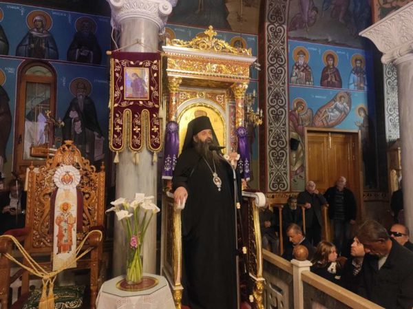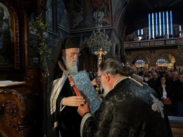 Ο σεπτός Ποιμενάρχης, απευθυνόμενος προς τους συμμετέχοντες στην Ι. Ακολουθία Πιστούς, ανέλυσε την Ευαγγελική Περικοπή που αναφέρεται στην πόρνη, η οποία άλειψε με πολύτιμο μύρο και με τα δάκρυα της μετανοίας της τα πόδια του Κυρίου μας. Έδωσε ιδιαίτερη έμφαση στις «παρερμηνείες» που υπάρχουν και ταυτίζουν την πόρνη είτε με την Αγία Μαρία την Μαγδαληνή, είτε με μια εκ των αδελφών του Αγίου Λαζάρου ή ακόμη και με την παρ’ ολίγον Αυτοκράτειρα, Αγία Κασσιανή την Υμνογράφο.