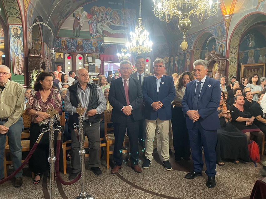 Τον σεπτό Ποιμενάρχη πλαισίωσαν οι Πανοσ. Αρχιμ. π. Ιωακείμ Βασιλάκος, νέος Εφημέριος του ως άνω Ι. Ναού, π. Δαμασκηνός Γεννηματάς, οι Αιδεσ. Πρωτ/ροι π. Κυριάκος Σκλίας, Αρχιερατικός Επίτροπος Βέλου-Βόχας και Εφημέριος Ι. Ναού Αγίας Παρασκευής Βραχατίου, π. Αθανάσιος Κοντογιάννης, Εφημέριος Καθεδρικού Ι. Ναού Απ. Παύλου Κορίνθου, οι Αιδεσ. Πρεσβύτεροι, π. Γεώργιος Χαρλαύτης, Εφημέριος Ι. Ναού Μεταμορφώσεως του Σωτήρος Περιγιαλίου, π. Σπήλιος Κλουκινιώτης, Εφημέριος Ι. Ναού Αγίου Γερασίμου Λεχαίου, π. Κωνσταντίνος Παπαβασιλείου, Εφημέριος Ι. Ναού Κοιμήσεως της Θεοτόκου Κάτω Άσσου και οι Διάκονοι π. Χρήστος Χίλιας και π. Άγγελος Σαλάτας.